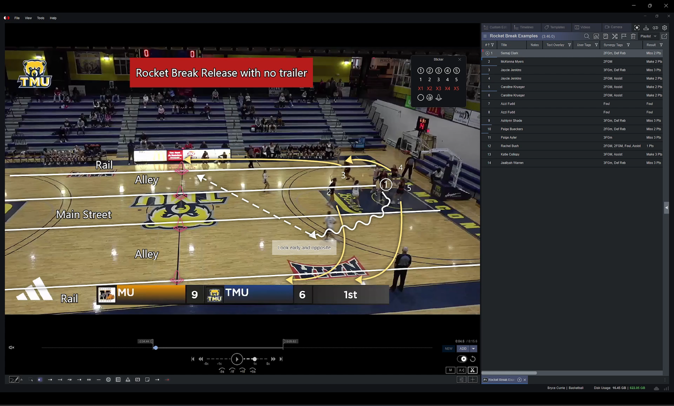 Our new overlay library includes stickers, spotlights, and play drawing tools. Customize your tools display in advance so that you can mark clips up quickly. Lines may be drawns as curves, or with angles.