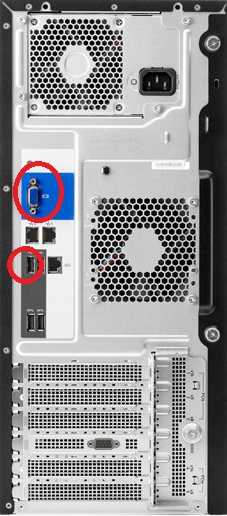 When trying to connect a monitor to a HP server you will connect the VGA cable into the blue port on the back of the server. In addition, you will connect the USB cable from the USB keyboard into an available USB port on the back of the server. Images are shown below.