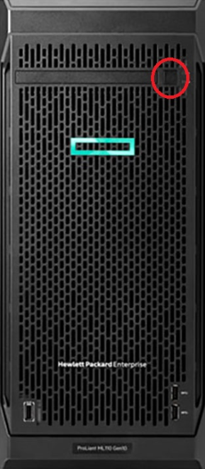 In order to restart your server, you have to locate the reset button on the front of your server as displayed in the picture below. Press and hold the reset button for around 5 seconds to begin the rebooting process.