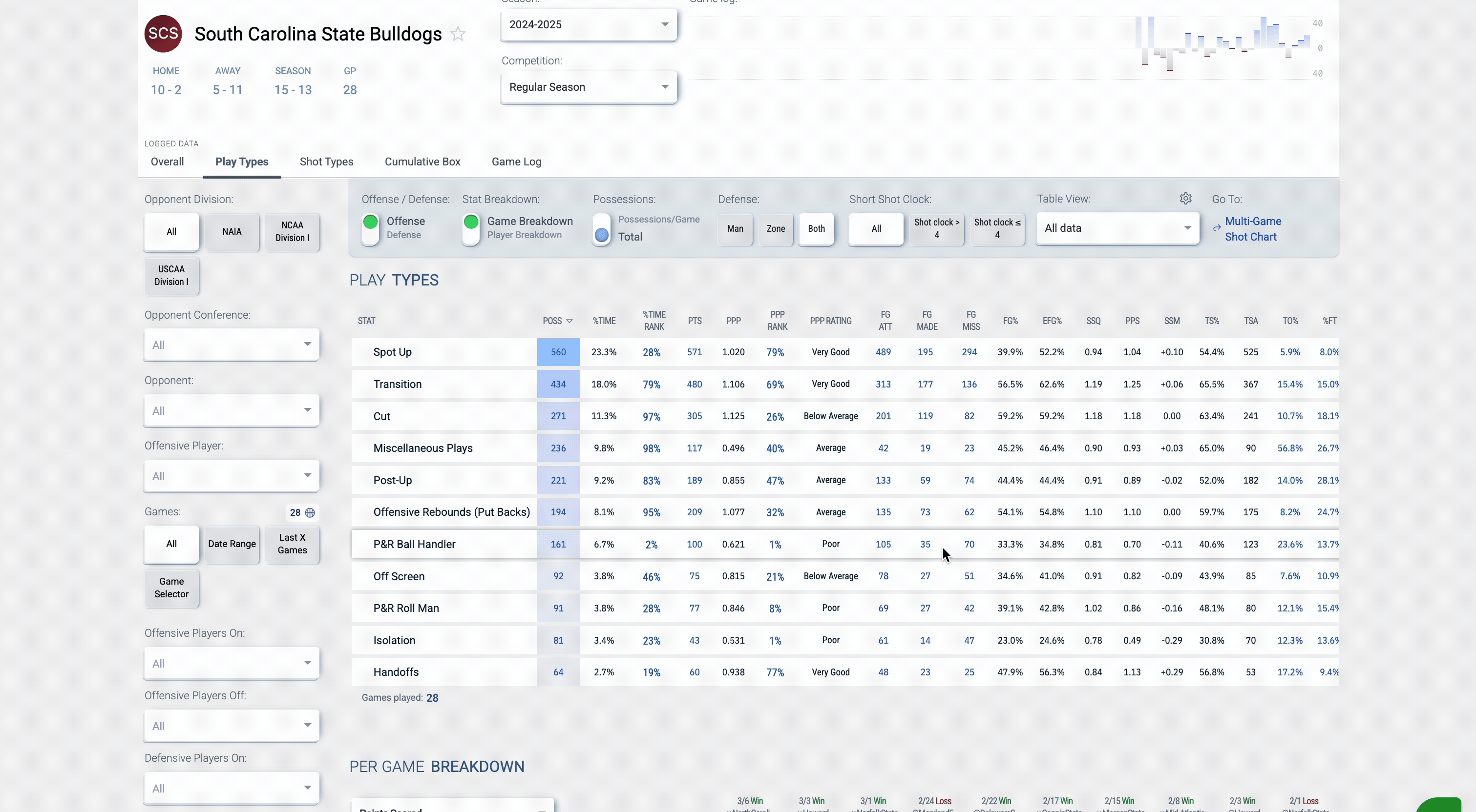 - Play Type: select whether to view stats when the play occurs in half court, transition, put backs, or all