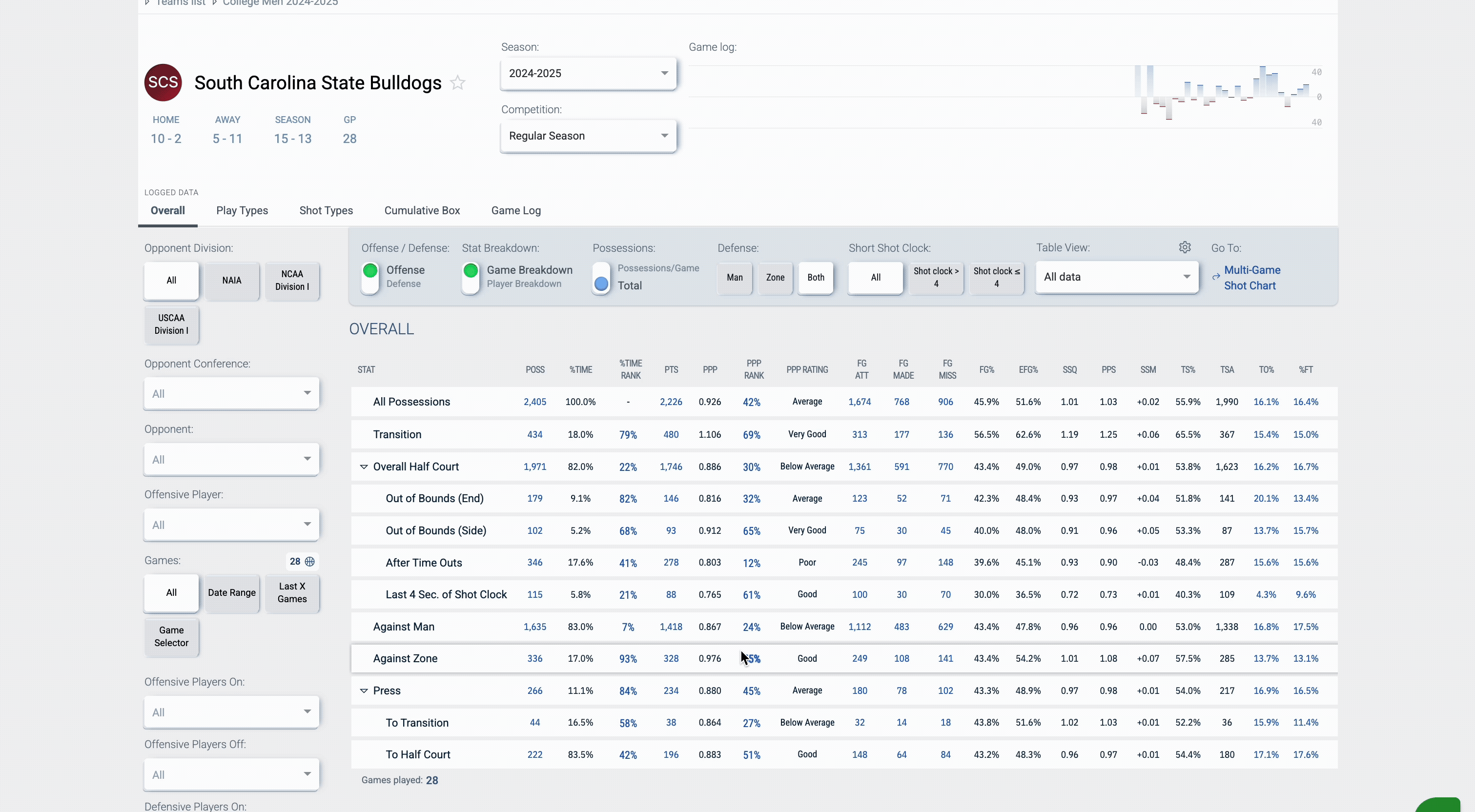 - Defense: select whether to view stats when the defense is in man, zone, or both