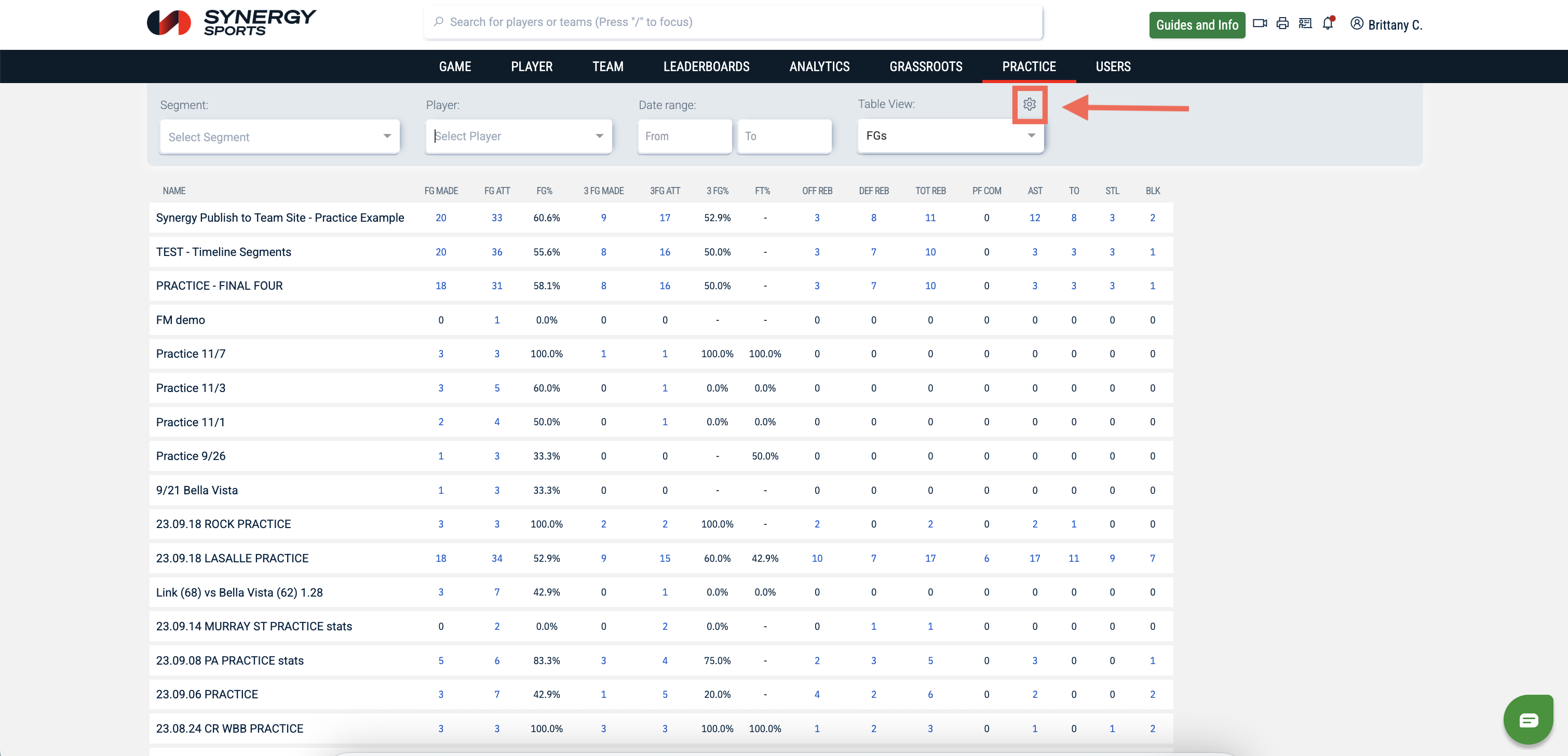 The Practice Tab is a special feature for those who have access to Synergy Editor Max as well as Synergy Team Site. On Editor Max, users have the option to tag their practices/scrimmages and then publish that data to Team Site. That data will then appear in a box score view on the Practice Tab.