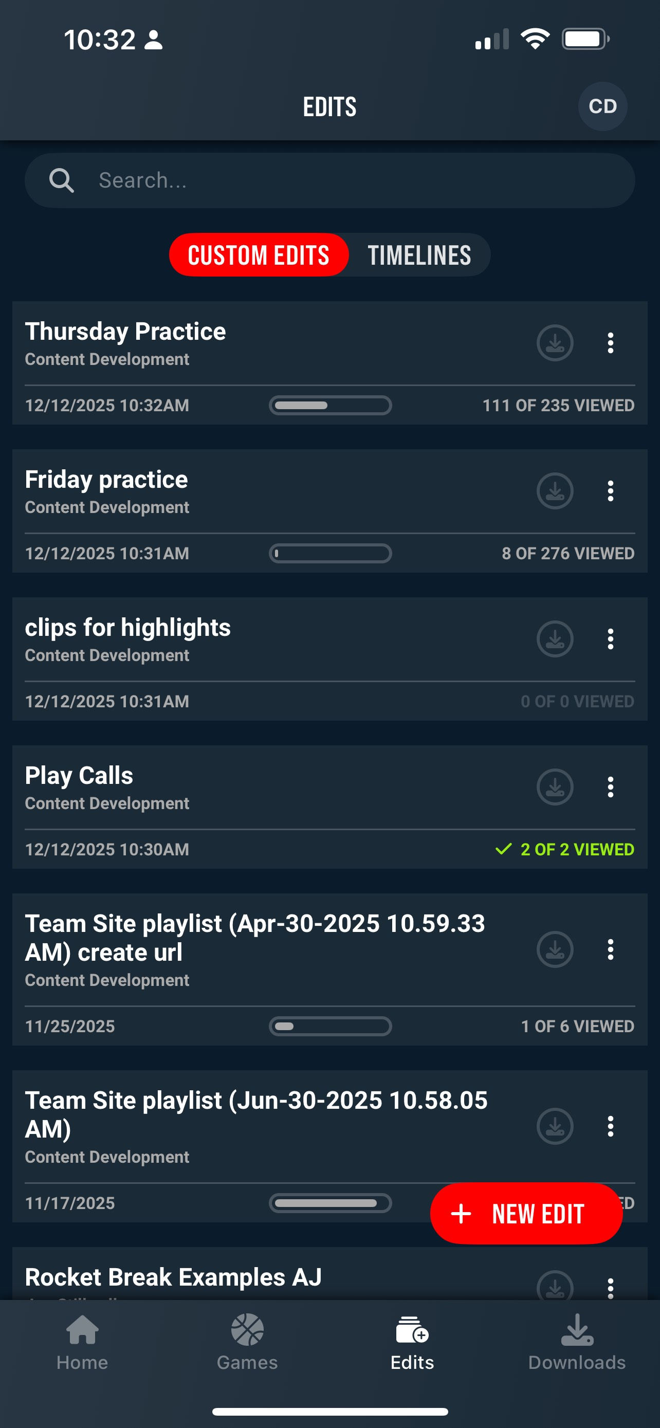 Like desktop Editor, Edits are divided more simply, into Custom Edits and Timelines. Players see only Custom Edits.