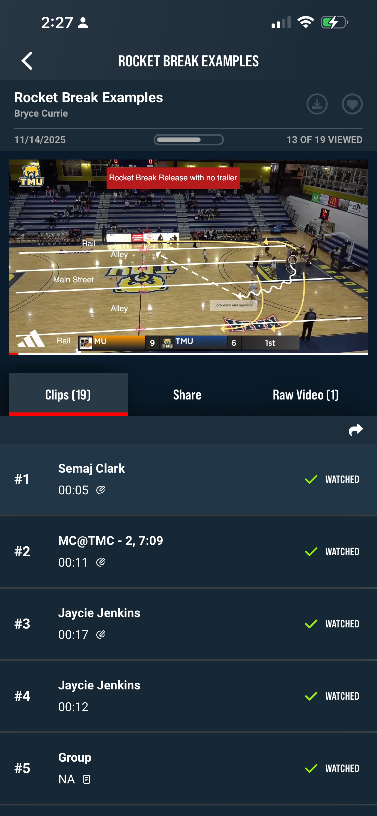 Period and time remaining are available atop Basketball game playlists to help with navigation: