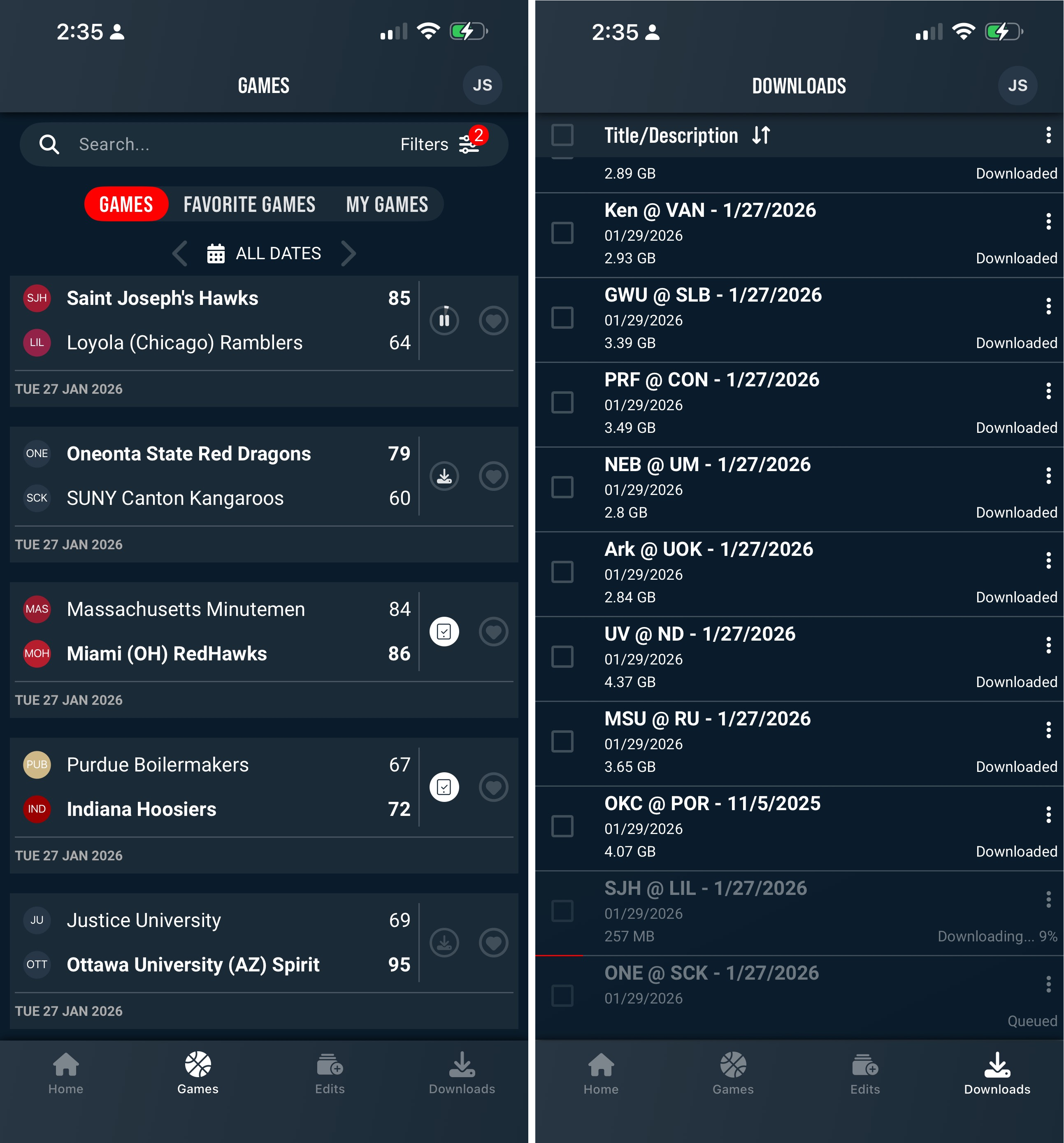 Some basketball games and clips were failing to download. This has been fixed.