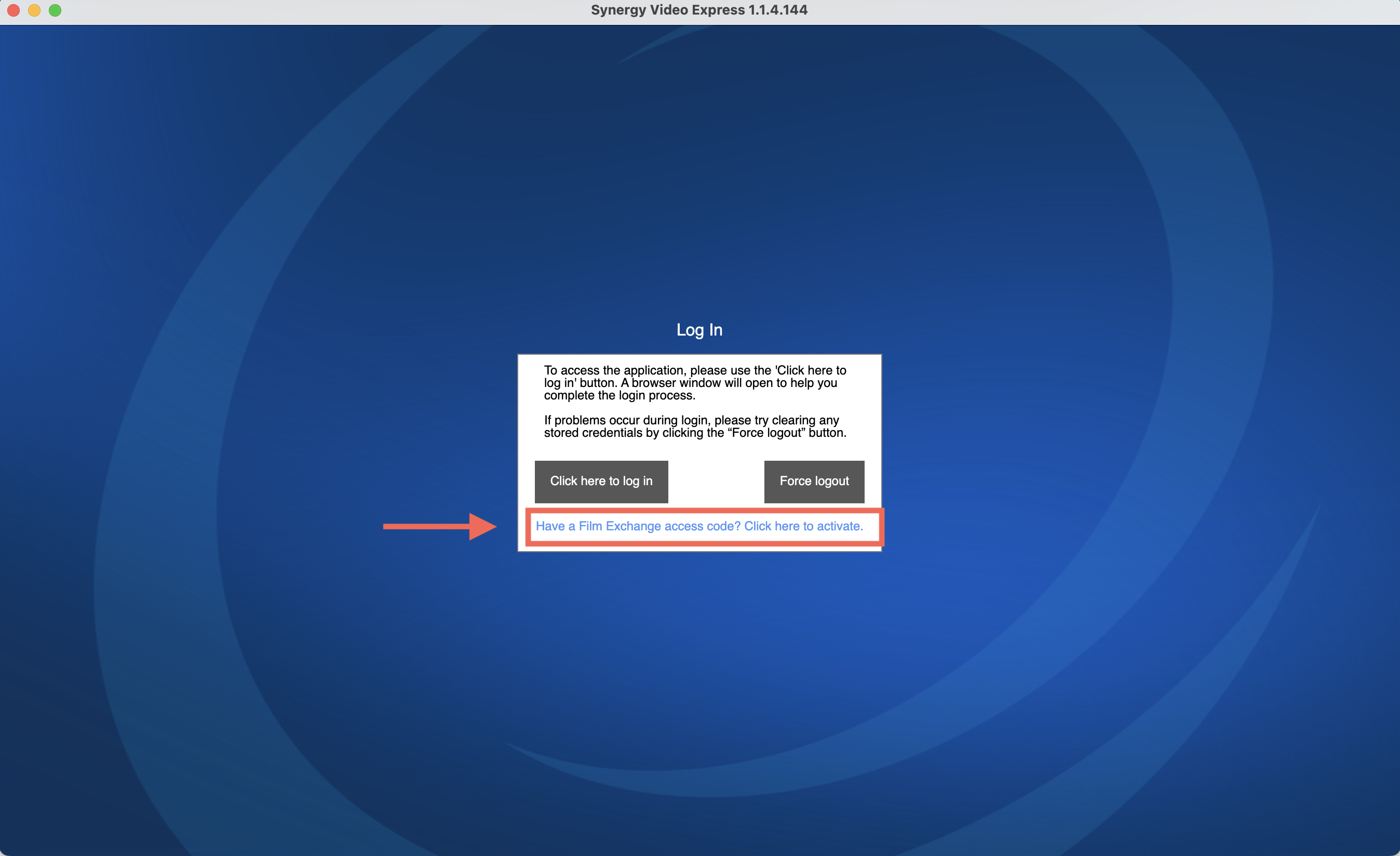 After you have downloaded Video Express, open the application. On the login screen, click the link to enter your access code.