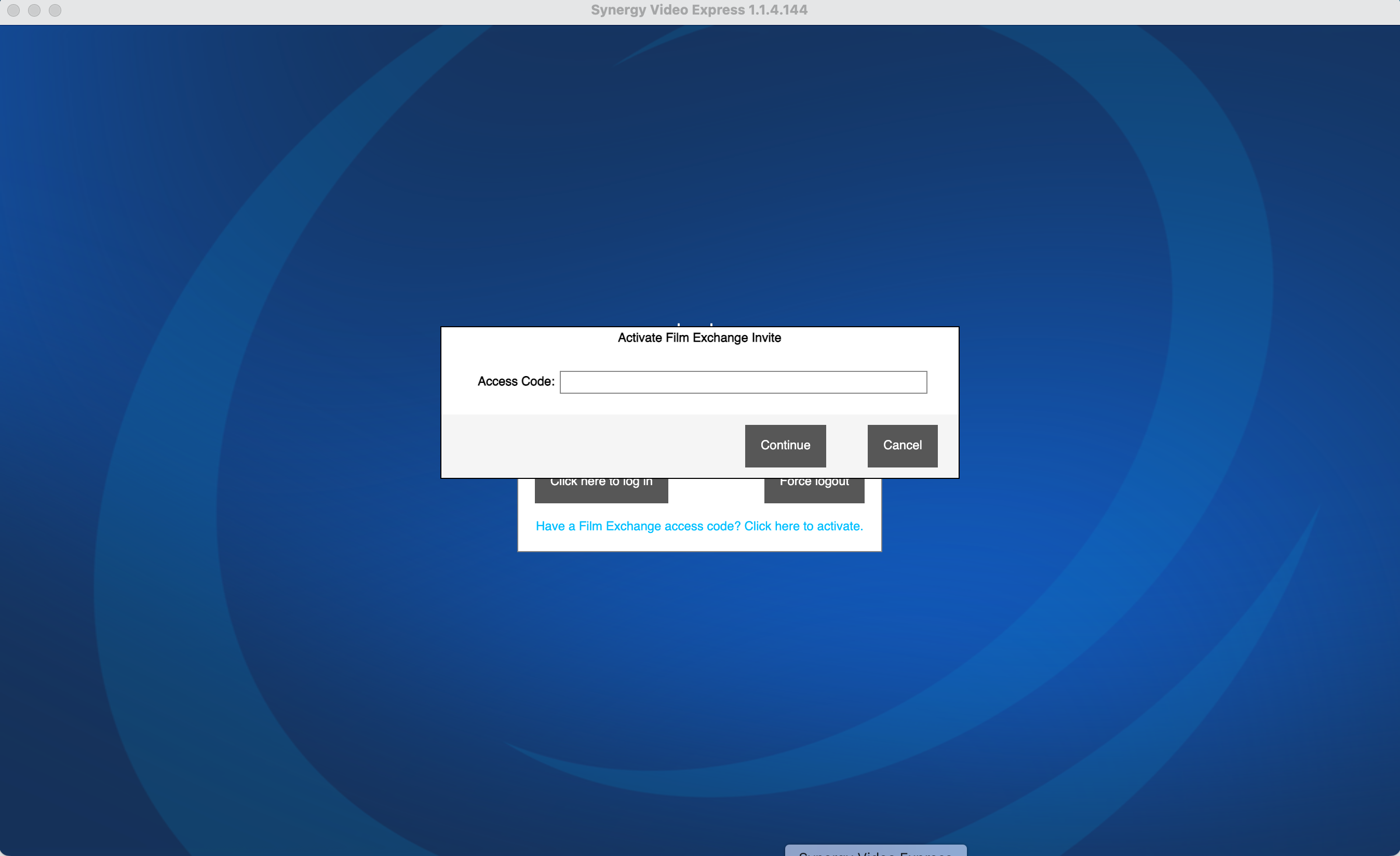After you are sent a film exchange invite, you will recieve an email with an access code and a link to download Video Express. Make sure you have an access code before you continue.