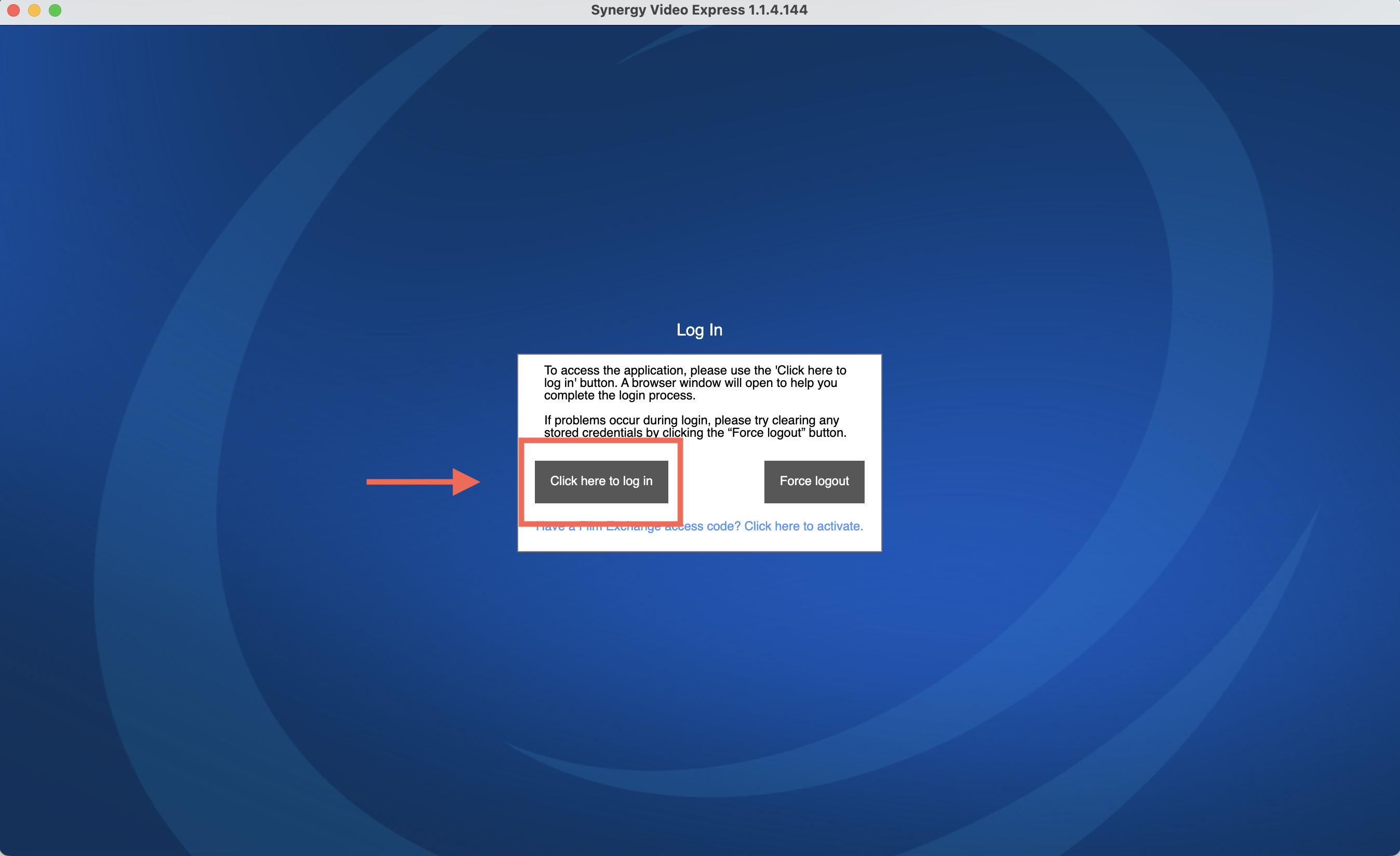 Once your password has been set, return to Video Express. Click the login button, and then use your email and your password to log in to the application.