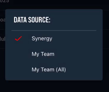 - My Team (All): Focus on your data, as well as any Shared Games from the Synergy Logger