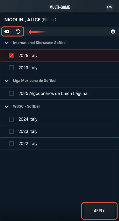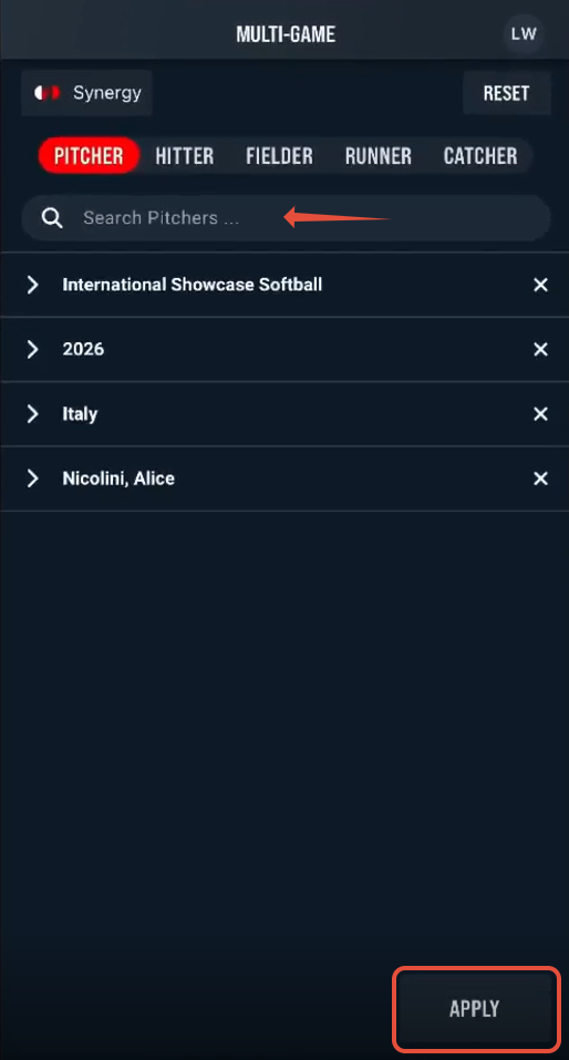 Once you've made your player selection, tap Apply.