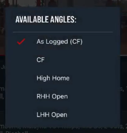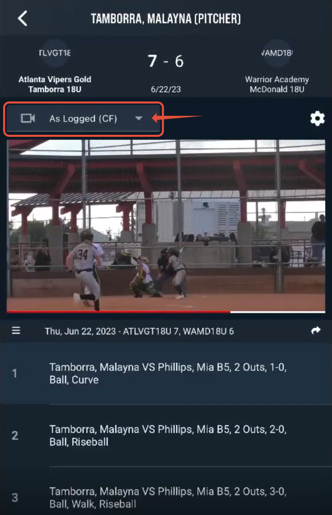 Above the video player, tap the drop-down button to select and view any available alternate camera angles for the event.