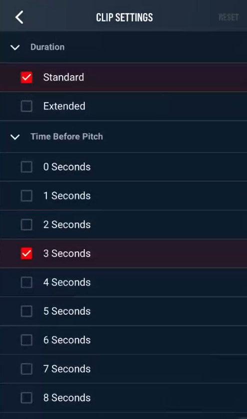 Tap the Gear icon to adjust the clip Duration and Time Before Pitch for your video playback.