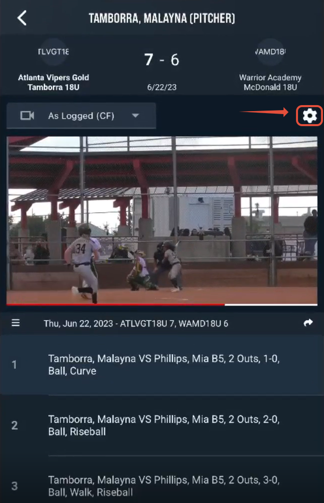 Once all your desired filters are in place, tap the Play icon in the upper-right corner of the screen. This will display the video player, with your filtered events organized in a playlist below the video.