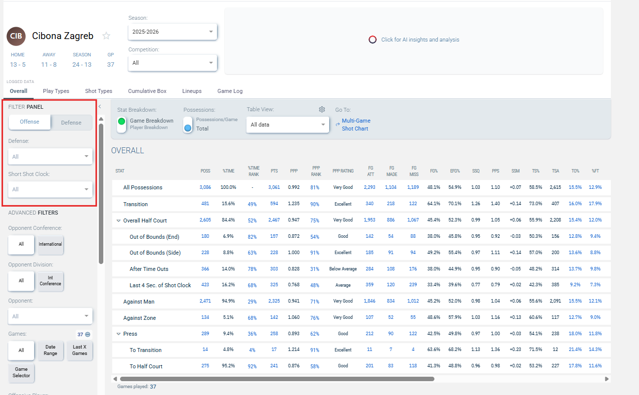 Moved the Offense/Defense toggle, the Defense Type filter, and the Short Shot Clock filter to the left side of the page to be with other filters.