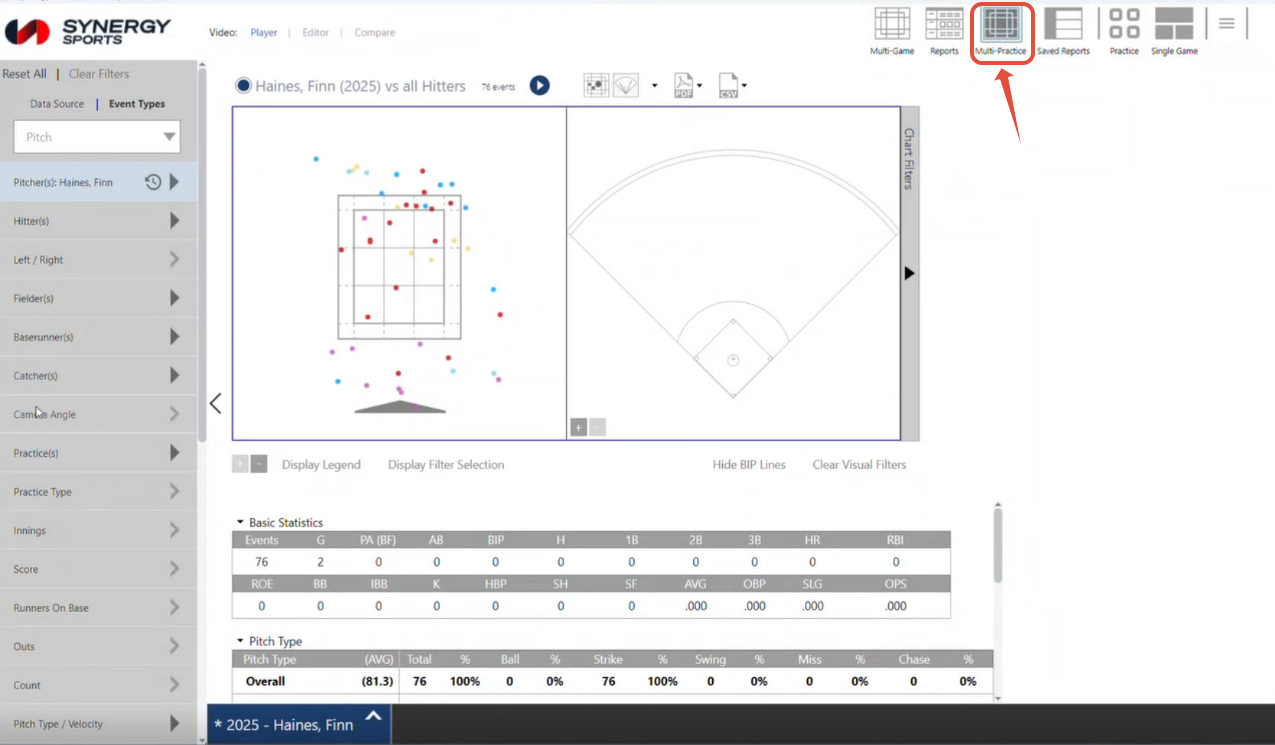 Multi-Practice view allows you to consolidate and analyze data from multiple practice sessions simultaneously, providing a holistic understanding of player performance and development trends over time. Just like Multigame view enables comprehensive game analysis, Multi-Practice view empowers you to dive deep into your practice data.