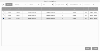 - Doubleheader Games: If only one game of a doubleheader displays for linking, you can link to a Synergy game on a different date involving the same teams if Synergy hasn't updated the schedule yet.